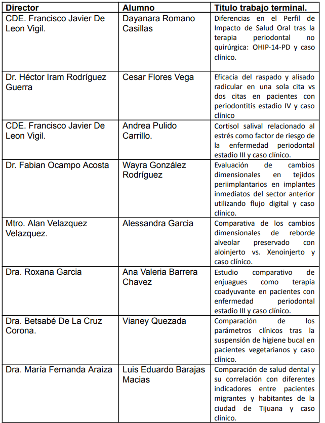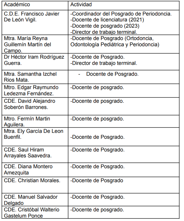 Además, reconocido por el Consejo Mexicano de Periodoncia el cual es un organismo legal y autónomo que reconoce la calidad de posgrados de periodoncia en el territorio nacional mexicano de acuerdo con los criterios esenciales para evaluar planes y programas de estudio de la especialidad en periodoncia establecidos por la Secretaria de Salud, Secretaria de Educación Publica y la Comisión Interinstitucional para la Formación de Recursos Humanos para la Salud.
